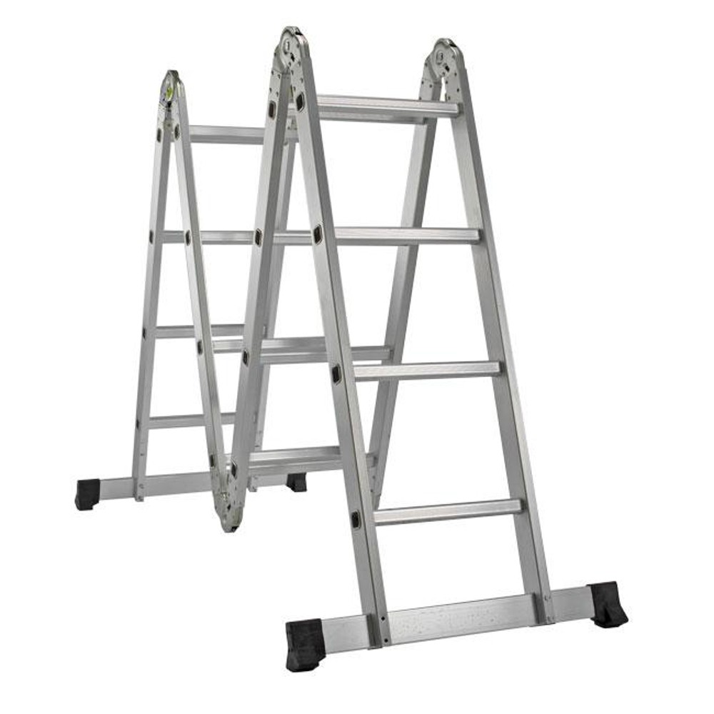 No household should be without the Super Step Ladder - a builder’s, painter’s and decorator’s dream. With multi-lock secure hinges it’s perfect for dozens of uses around the house and garden, especially those that are awkward or impossible with a conventional ladder. Easily convert from a sturdy 4.75m full-length extension ladder for clearing gutters and cleaning windows. Use the stair climber position to decorate stairwells with ease, use as a scaffold or trimming high hedges, painting walls and more. You can even work right up against a vertical surface, flush with a wall or a window. Made from aircraft grade non-rust aluminium, it’s strong enough to hold up to 136kg, yet light enough to carry, and small enough to fit in the boot of a car. Non-slip rubber feet protect surfaces against scratches whilst giving added stability and safety. Weighs 40lbs/19kg and extends to max 4.75m. It measures an impressive L35xW28xH128cm when folded flat.