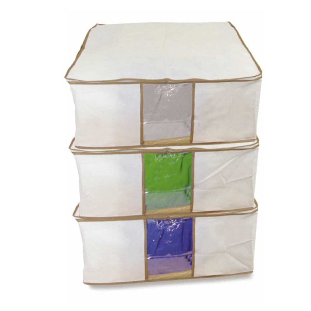 For duvets, clothing, blankets or pillows. Need a place to store out of season clothing and spare bedding? These incredibly spacious storage bags are the perfect solution. They’re zipped on 3 sides for instant access and have 2 carry handles. The transparent panels let you see exactly what’s in each one and they’re made from Neotex™ – a tough breathable material that protects from moths, damp, mildew and dust. The jumbo storage bags are 68.5 x 58 x 25.5cm each and are supplied as a set of three. In this amazing offer, you will also receive a bonus pair of breathable storage chests absolutely free! (chests measure 51 x 26 x 26cm).